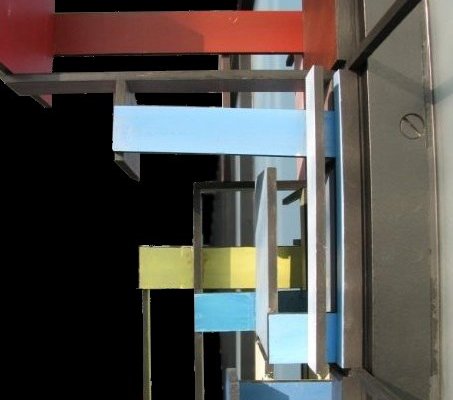 Project #1: Color Project Our assignment was to translate the Composition with “Black, Red, Gray, Yellow, and Blue” by Piet Mondrian into 3 dimensions. My partner and I chose to create an installation that fit into the I-beams of Crown Hall and have the colored planes extend from the wall. Partner: E. Barbour